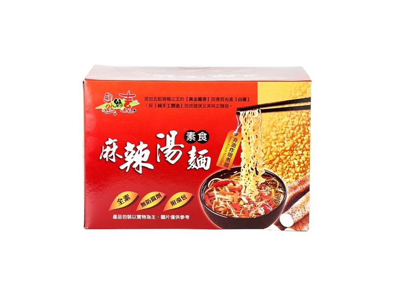 【素食麻辣湯包】水、芥花油、豆辦(黃豆(非基因改造)、水、鹽、小麥)、辣椒醬(辣椒、鹽)、調味劑(L-麩酸鈉、DL-胺基丙酸)、辣椒粉、花椒、桂皮、草果、甘草、丁香、八角、小茴、荳蔻、鹽、糖、香料、維生素E(抗氧化劑)